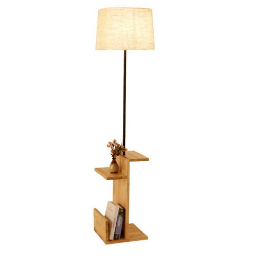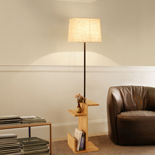 أباجورة وطاولة أرضية موديل لايت ون قاعدة خشبية وغطاء من قماش الكتان: